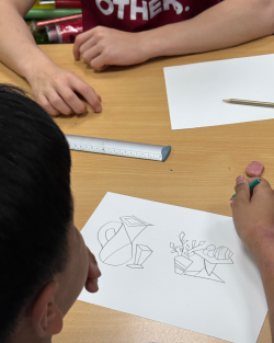 A lo largo de este segundo trimestre, los alumnos de Volando Juntos han profundizado en un camino que inició el curso pasado: mejorar su dominio del dibujo técnico —especialmente el punto de fuga, las perspectivas y la composición— y, al mismo tiempo, descubrir la belleza del mundo y de sí mismos a través del arte.